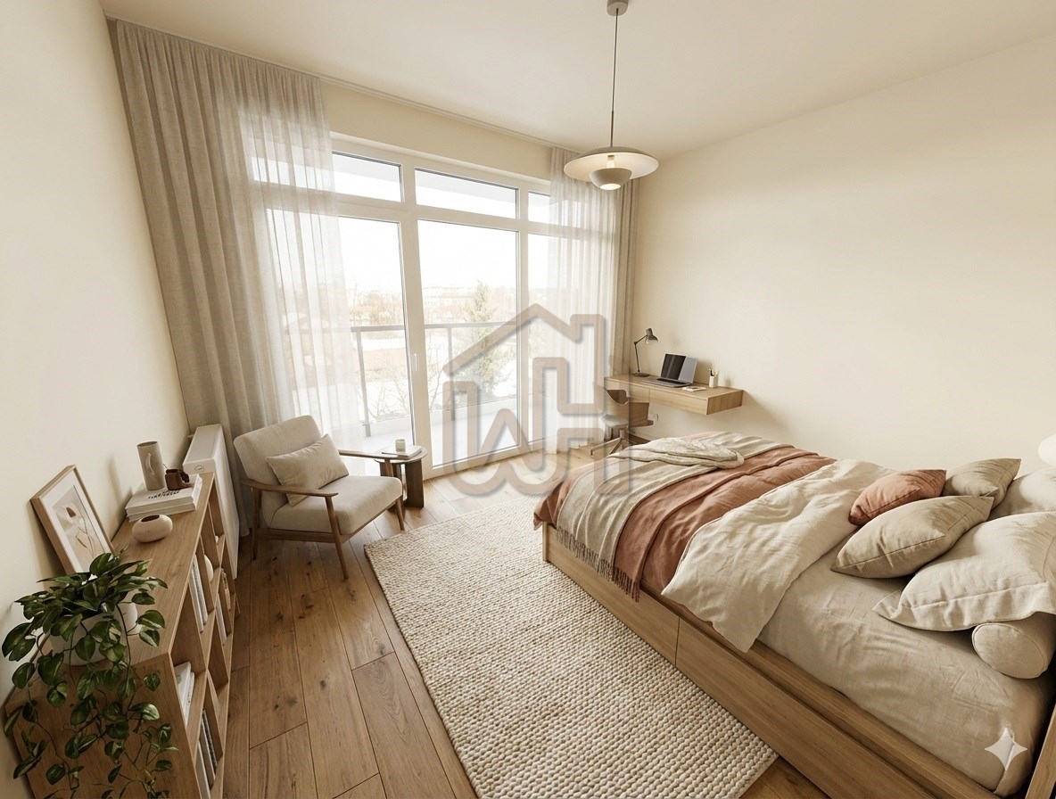 Mieszkanie charakteryzuje się świetnym doświetleniem i przemyślanym podziałem na strefę dzienną oraz prywatną.