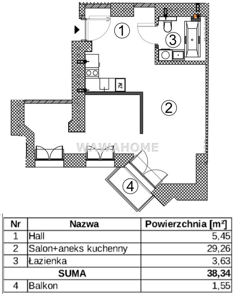 | Powierzchnia użytkowa [m2] | 38,35 m² |